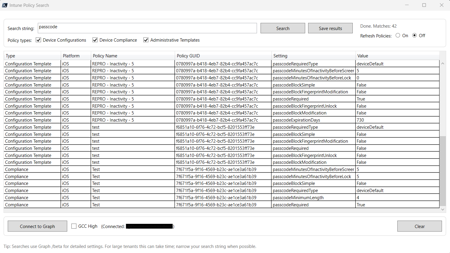 *) are perfect for audits, MSP onboarding, or tenant baseliningLeave “Refresh Policies” off for faster searches using cached data